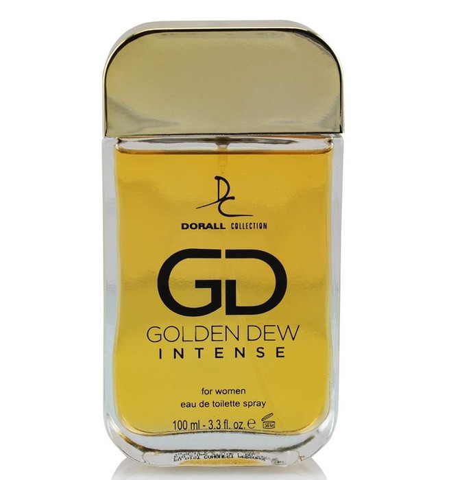 Golden dew Intense is a perfume made by Dorall Collection. This women perfume was launched in and typically comes in a 100 ml. bottle size. This perfume features head notes of Pink Pepper, middle notes of Geranium, Lilac and base notes of Amber, Patchouli It typically retails for around $10 in most stores, although prices may vary. Our visitors gave it an excellent rating of 5/5.