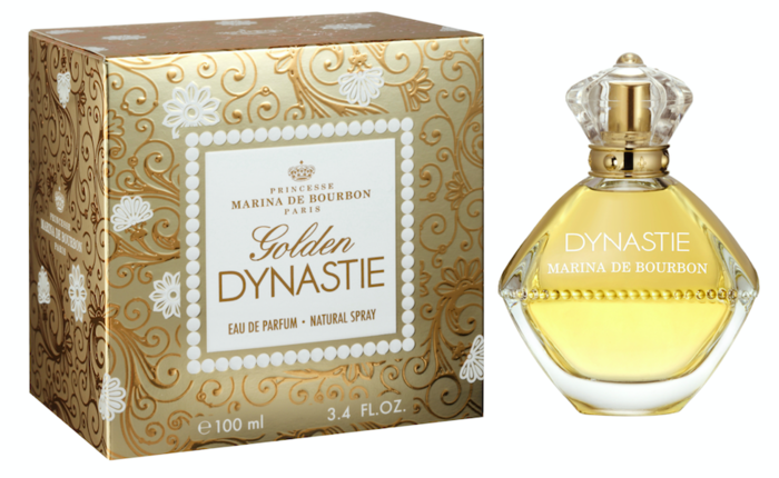 Golden Dynastie is a perfume made by Princesse Marina De Bourbon. This women perfume was launched in 2012 and typically comes in a 100 ml. bottle size. This perfume features head notes of Green apple, Green Notes, middle notes of Rose, Violet and base notes of Cedarwood, Musk It typically retails for around $60 in most stores, although prices may vary. Our visitors gave it an good rating of 4.33/5.