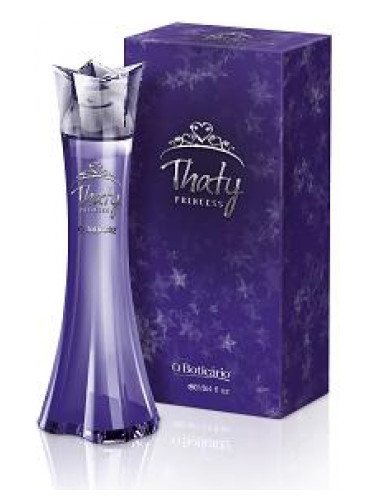Thaty Princess is a perfume made by O Boticario. This women perfume was launched in 2010 and typically comes in a 80 ml. bottle size. This perfume features head notes of Grapefruit, Lemon, middle notes of Iris, Jasmine and base notes of Amber, Cedarwood It typically retails for around $30 in most stores, although prices may vary. Our visitors gave it an average rating of 3/5.